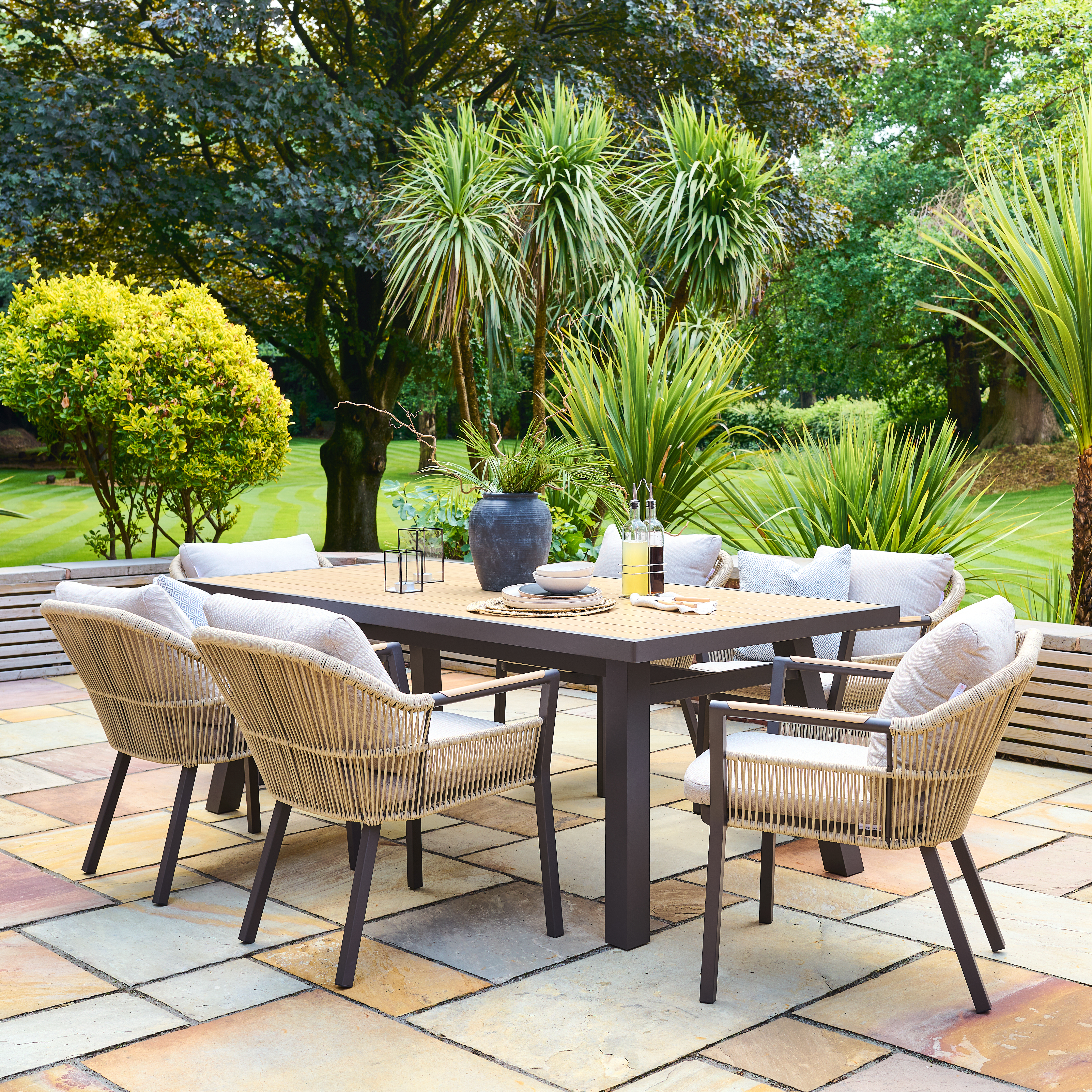 We have everything from classic lounge and dining sets as well as bistro sets, chaise sets and benches which are ideal for that perfect smaller space in your garden. All complete with outdoor cushions and pads.